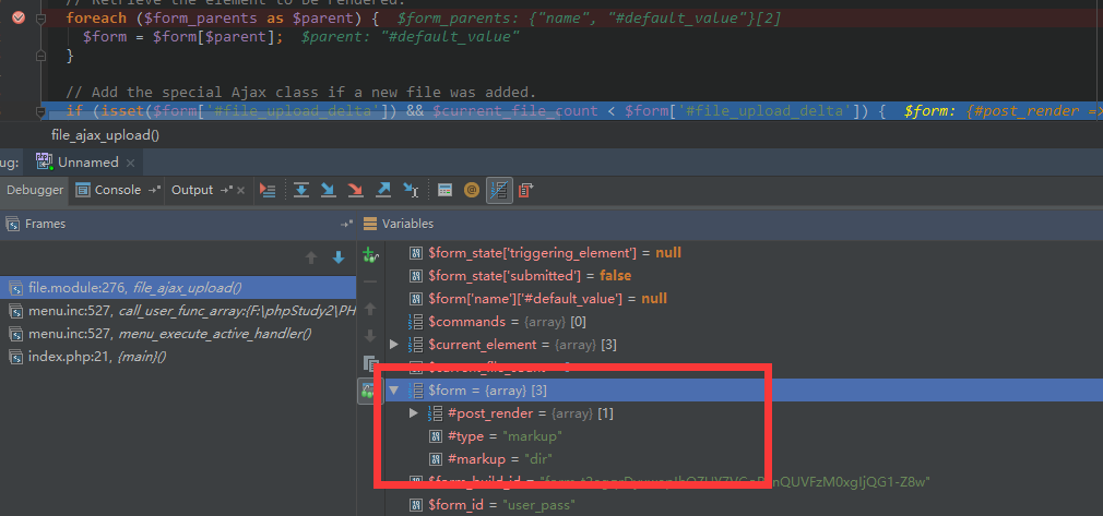 现在我们可以得到一个被缓存的 $form,但是,这个被缓存的 $form 并没有注入我们想要的数组,所以也就不能通过 0x02 所述的漏洞触发点进行触发。现在的问题是,如何将我们的 payload 注入到 $form 里。