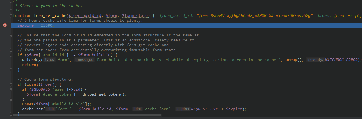 通过分析代码,可以得知,若想 $form 被 cache,需要满足以下几个条件: